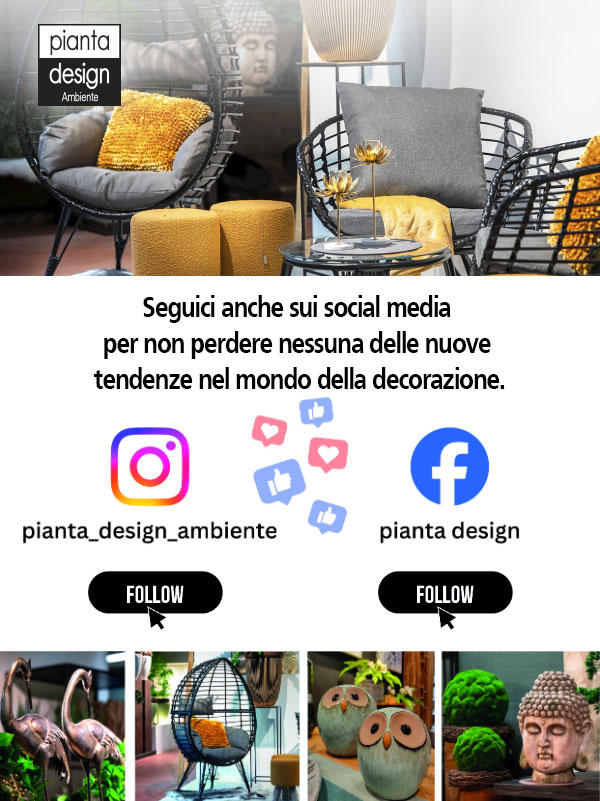 Seguici su Facebook e Instagram Seguici anche sui social media per non perdere nessuna delle nuove tendenze nel mondo della decorazione.